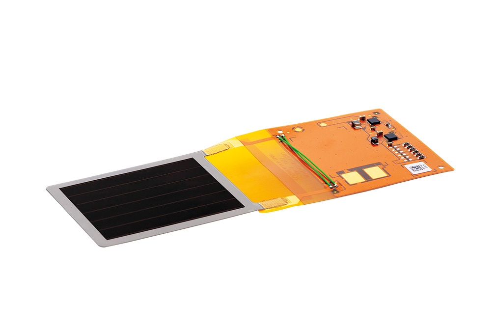 柔性能源收集设备,尺寸为41mm x 47mm,使用了独特的发电有机光伏(OPV)材料,该材料从2013年与九州大学进行了行业 - academia合作。结果是在室内(大约200 lx)和中等光线(例如阴影室外区域(大约10,000 lx))的低光环境中有效发电188金宝慱官网登录。此外,可以将薄,轻巧且可弯曲的膜安装在各种形状的物联网设备上。