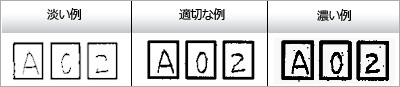 備考欄やメモ欄のように,文字枠が無いものに記入した文字は,DynaEye 11では読み取りできません。帳票設計規約に則って1桁ず文字枠で区切った帳票を作成し,枠の中に記入すれば読み取り可能です。