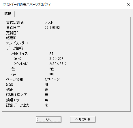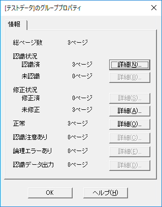 デスクトップ画面で,認識後のイメージのタイトル上でマウスの右ボタンをクリックすると,そのグループのプロパティが表示されます。その中の詳細をクリックすると,ペ,ジが表示されます。